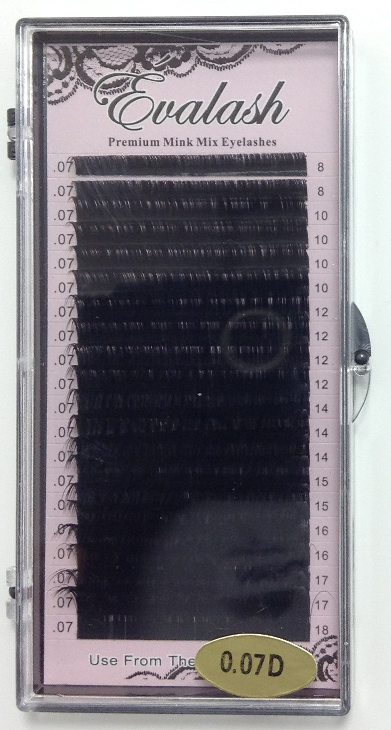 Volume Lash Mink 2D+ Black Light features delicately tapered tips for a naturally enhanced appearance. These ultra-light, soft extensions ensure maximum comfort while maintaining durability with crimp, water, and heat resistance. Each tray contains approximately 5,000 strands with a thickness of .05 mm & .07 mm and 20 rows.